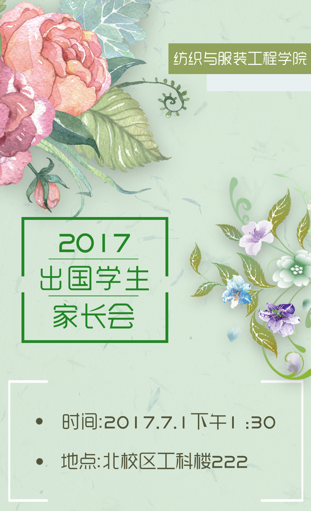 纺织与服装工程学院2017出国学生家长会