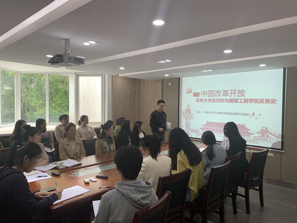 2021年4月,纺织与服装工程学院党委积极组织开展党史学习教育,各支部不断创新学习教育形式,全体党员们深刻感悟了中国共产党为什么“能”,马克思主义为什么“行”,中国特色社会主义为什么“好”,掀起“学党史、感党恩、听党话、跟党走”热潮。