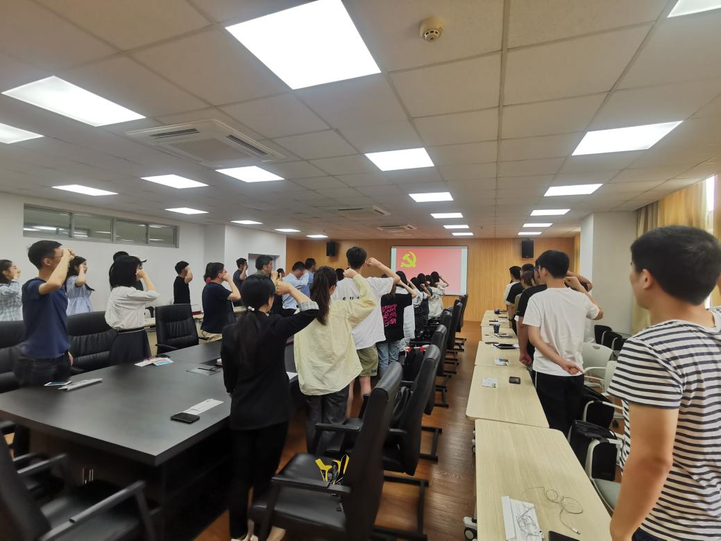 肖甫青带领全体党员重温入党誓词。与会党员面向党旗高举右手,庄重地念出每一句誓词,铿锵有力,又一次接受党性洗礼,增强政治信仰,筑牢思想根基。