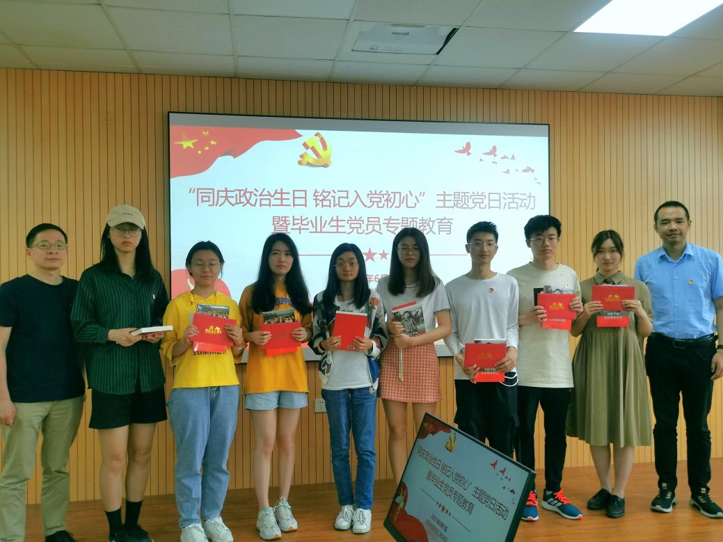 接着,5月、6月入党的毕业生党员同庆政治生日,四位老师相赠纪念品,期望他们永葆共产党员的先进性,坚定理想信念,勇敢踏上新征程,自觉做新时代奋斗者。