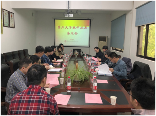 2019年4月24日上午,苏州大学纺织与服装工程学院在北校区丝韵楼316会议室召开了教学成果鉴定会。鉴定委员会由5位校内外教育教学专家组成,以东华大学郭建生教授为组长,对10项教学成果进行了审核鉴定。鉴定会由纺织与服装工程学院院长潘志娟主持。