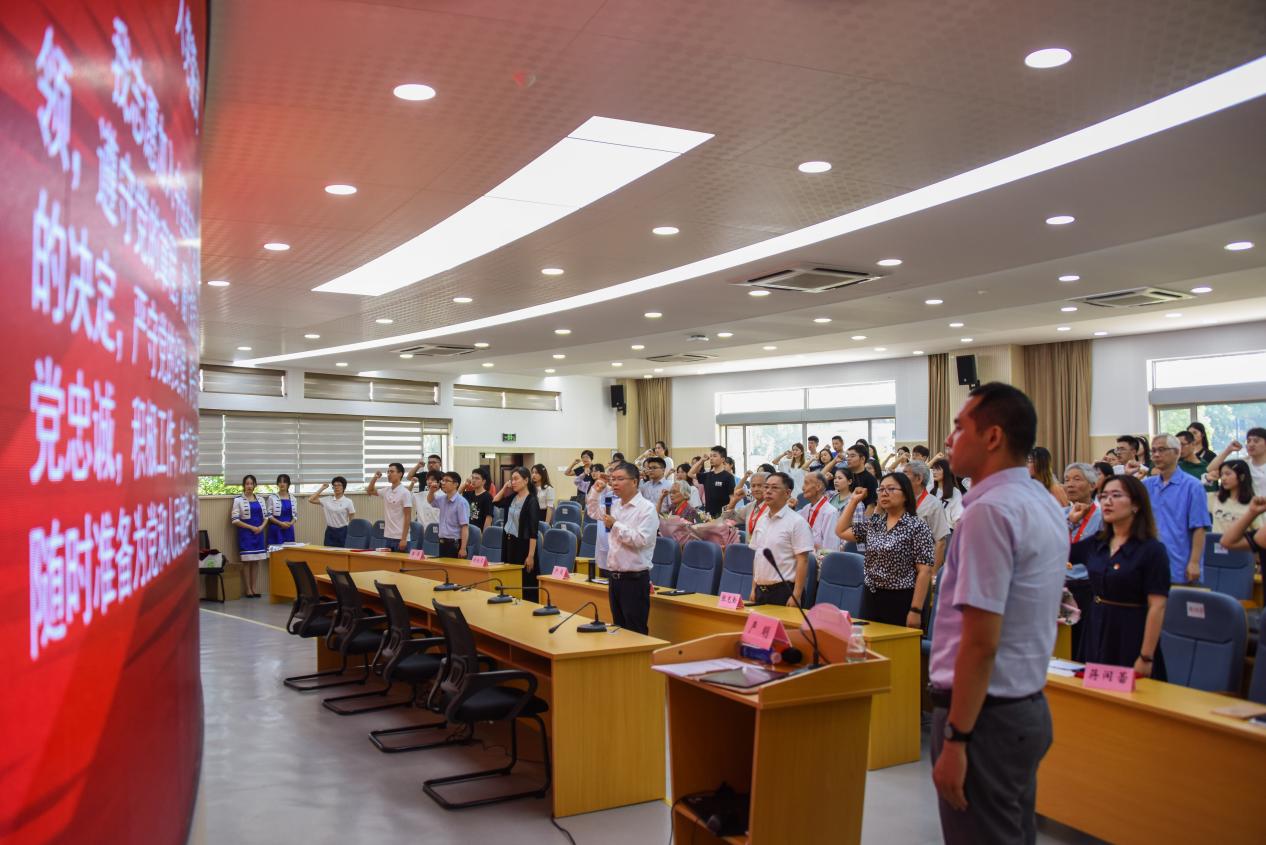 2021年6月22日下午,纺织与服装工程学院党委隆重举行“光荣在党50年”纪念章颁发仪式暨新党员集中入党宣誓仪式,学院党政领导班子成员、党委委员、各支部书记、50年以上党龄的老党员代表及2021年新发展党员、部分入党积极分子等出席会议,会议由学院党委副书记、副院长严明主持。