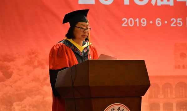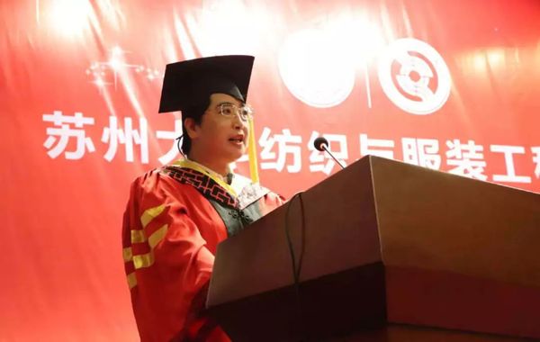潘志娟代表学院向全体毕业生表示祝贺。她满怀深情地和大家一起共同细数了同学在校期间的生活点滴和取得的累累硕果,感谢同学们把最美好的青春年华留在了纺院,同学们每一步的成长都彰显着“不畏艰险,团结协作,优质高效”的“纺服精神”。她希望同学们在毕业之后坚持学习,永不停歇;保持坚韧,久久为功,并且学会笑看人生起落。她鼓励同学们在未来去弘扬纺服人的奋斗精神,用“博学笃行,慧织天下”的情怀去包容和理解这个世界,去创造性的纺云织梦,用行动践行“母院以我们为荣”的誓言。不管多少年,我们都有一个共同的名字“苏大纺服人”。