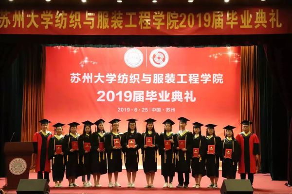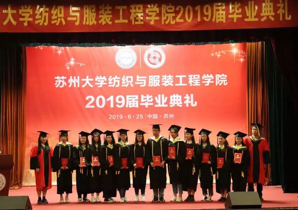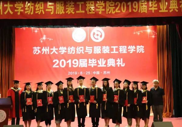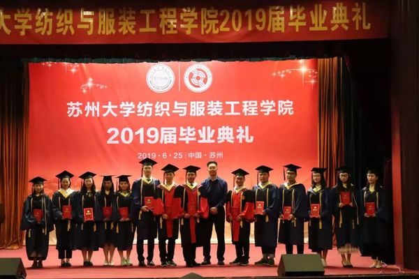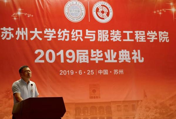 6月25日上午,苏州大学纺织与服装工程学院2019届毕业典礼在敬贤堂隆重举行。学院学位评定分委员会主席、院长潘志娟;学院党委书记董召勤;学院副院长王祥荣、关晋平;学院办公室主任、副处级调研员司伟;学院学位评定分委员会副主席张克勤;学院学位评定分委员会委员、纺织工程系系主任陈廷;轻化工程系系主任唐人成;服装工程系系主任蒋孝锋;非织造材料与工程系系主任杨旭红;2015级各班班主任;全体专职辅导员;毕业生家长代表以及300余名本科、硕士、博士毕业生出席本次典礼。典礼由学院党委副书记、副院长卢永嘉主持。