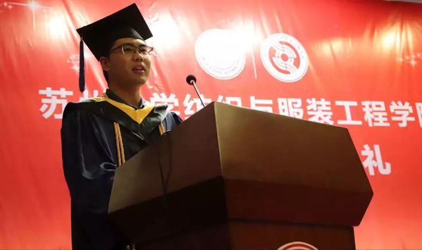 2019届研究生优秀毕业生代表、纺织化学与染整工程孙玉发同学回忆了在学院难忘的七年苏大时光,他说,“走出了青涩和迷惘,它赋予了我们每个人智慧、理性和成熟。不驰于空想,不骛于虚声,带着纺服人的责任和使命,不忘初心,砥砺前行! ”